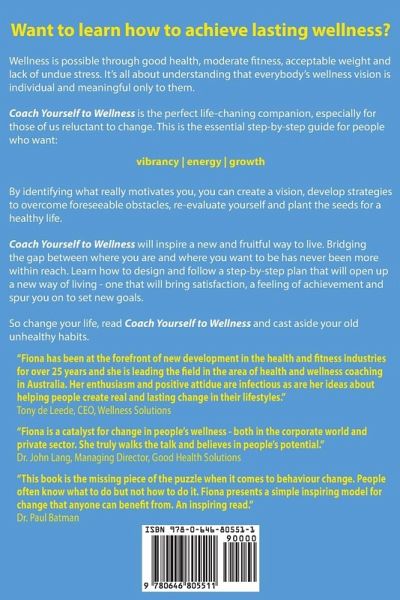 Wellness is possible through good health, moderate fitness, acceptable weight and lack of undue stress. It's all about understanding that everybody's wellness vision is individual and meaningful only to them. Coach Yourself to Wellness is the perfect life-chaning companion, especially for those of us reluctant to change. This is the essential step-by-step guide for people who want: vibrancy energy growth By identifying what really motivates you, you can create a vision, develop strategies to overcome foreseeable obstacles, re-evaluate yourself and plant the seeds for a healthy life. Coach Yourself to Wellness will inspire a new and fruitful way to live. Bridging the gap between where you are and where you want to be has never been more within reach. Learn how to design and follow a step-by-step plan that will open up a new way of living - one that will bring satisfaction, a feeling of achievement and spur you on to set new goals. So change your life, read Coach Yourself to Wellness and cast aside your old unhealthy habits.