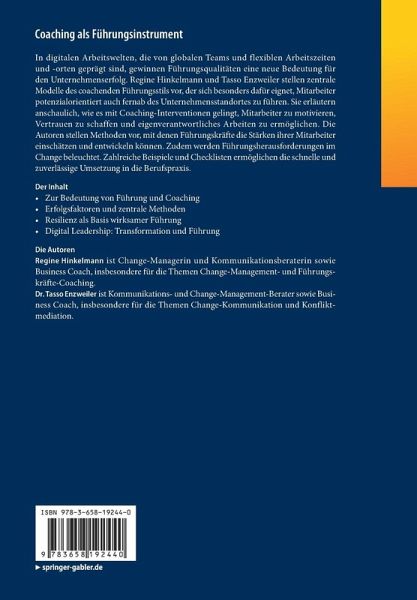 In digitalen Arbeitswelten, die von globalen Teams und flexiblen Arbeitszeiten und -orten geprägt sind, gewinnen Führungsqualitäten eine neue Bedeutung für den Unternehmenserfolg. Regine Hinkelmann und Tasso Enzweiler stellen zentrale Modelle des coachenden Führungsstils vor, der sich besonders dafür eignet, Mitarbeiter potenzialorientiert auch fernab des Unternehmensstandortes zu führen. Sie erläutern anschaulich, wie es mit Coaching-Interventionen gelingt, Mitarbeiter zu motivieren, Vertrauen zu schaffen und eigenverantwortliches Arbeiten zu ermöglichen. Die Autoren stellen Methoden vor, mit denen Führungskräfte die Stärken ihrer Mitarbeiter einschätzen und entwickeln können. Zudem werden Führungsherausforderungen im Change beleuchtet. Zahlreiche Beispiele und Checklisten ermöglichen die schnelle und zuverlässige Umsetzung in die Berufspraxis.