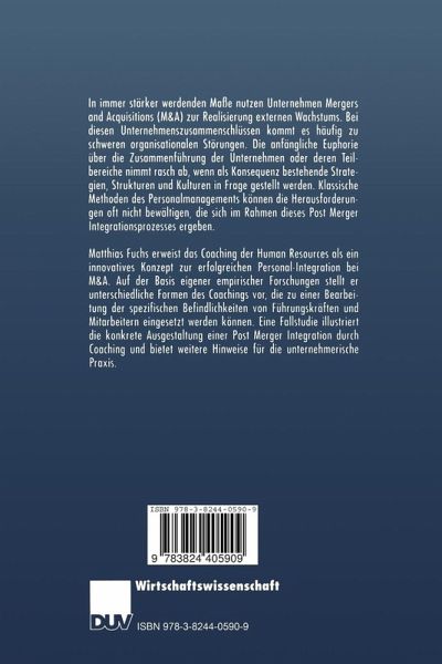 Matthias Fuchs stellt, entsprechend den spezifischen Befindlichkeiten von Führungskräften und Mitarbeitern, unterschiedliche Formen des Coachings vor, und erweist Coaching als ein innovatives Konzept zur erfolgreichen Personal-Integration bei Mergers and Acquisitions.