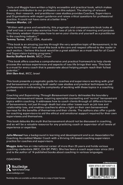 "It is a privilege to have made a small contribution to this comprehensive book. Julia and Maggie have made a difficult subject uplifting and exceedingly informative. Both practical and well-researched, it gives real life, relatable case studies throughout. This is an impressive addition to my essential reading list for experienced and student coaches and supervisors." - Marie Faire, Director at The Beyond Partnership, Executive Coach and Executive Trainer