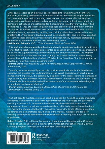"After several years as an executive coach specializing in working with healthcare providers, especially physicians in leadership roles, Dr. Hicks has developed a practical and meaningful approach to teaching these leaders how to have effective helping conversations with subordinates and co-workers. Like many professionals, physicians don't go to school and are not trained for the leadership roles they may suddenly find themselves in. They are taught to quickly diagnose problems and give direct answers and advice. As leaders, they must learn and demonstrate a very different set of skills, including listening, questioning, guiding, and helping others learn to solve their own problems. The "Four Square Coaching Model" developed by Dr. Hicks is a proven method for learning those skills. I highly recommend this book for any healthcare professional who wants to hone their ability to lead and develop others."