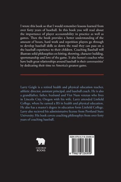 I wrote this book so that I would remember lessons learned from over forty years of baseball. In this book you will read about the importance of player accountability in practice as well as games. Then the book provides a better understanding of the amount of hours, hard work and repetition players go through to develop baseball skills so down the road they can pass on a the baseball experience to their children. Coaching Baseball will illustrate solid philosophies on hitting, throwing, character building, sportsmanship and love of the game. It also honor's coaches who have built great relationships around baseball in their communities' by dedicating their time to America's greatest game.