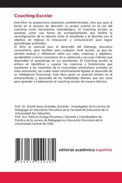 Este libro no proporciona respuestas predeterminadas, sino que guía al lector en el proceso de descubrir su propio camino en el uso del coaching como herramienta metodológica. El Coaching Escolar se presenta como una forma de acompañamiento que facilita la reconfiguración de la relación entre el estudiante y el docente con el objetivo de mejorar la interacción y comunicación para lograr aprendizajes profundos.El libro es esencial para el desarrollo del liderazgo educativo universitario, pero también para cualquier nivel escolar, ya que les permite evaluar y reflexionar sobre sus roles, creencias y objetivos, ayudándolos a tomar conciencia de su potencial y recursos internos que desarrollen el aprendizaje en sus estudiantes. El Coaching escolar se enfoca en identificar y superar las creencias y limitaciones que mantienen a los miembros de la comunidad universitaria anclados en estas emociones, las cuales están estrechamente ligadas al desarrollo de su Inteligencia Emocional. Este libro pone un especial énfasis en el entrenamiento y desarrollo de las habilidades blandas que son clave para aprender a implementar el coaching escolar de manera efectiva.