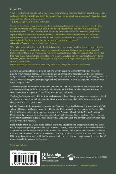 Coaching for Change is a valuable book for students in coaching, change management or organizational development courses, as well as professionals who want to develop their skills to drive successful change within their organizations.