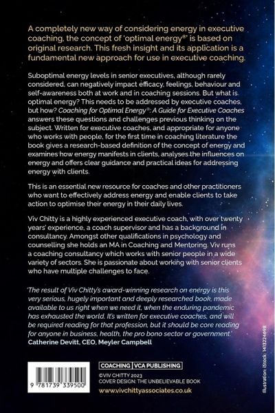 A completely new way of considering energy in executive coaching, the concept of Optimal Energy® is based on original research. This fresh insight and its application is a fundamental new approach for use in executive coaching. Suboptimal energy levels in senior executives, although rarely considered, can negatively impact ef¿cacy, feelings, behaviour and self-awareness both at work and in coaching sessions. But what is optimal energy? This needs to be addressed by executive coaches, but how? Coaching for Optimal Energy: A Guide for Executive Coaches answers these questions and challenges previous thinking on the subject. Written for executive coaches, and appropriate for anyone who works with people, for the ¿rst time in coaching literature the book gives a research-based de¿nition of the concept of energy and examines how energy manifests in clients, analyses the in¿uences on energy and offers clear guidance and practical ideas for addressing energy with clients. This is an essential new resource for coaches and other practitioners who want to effectively address energy and enable clients to take action to optimise their energy in their daily lives.