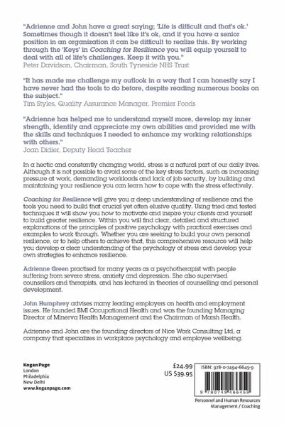 A recent report for the CIPD indicated that stress is now the more common cause of long-term sick leave in the UK for the first time ever. Demanding workloads and lack of job security are key stress factors, but in a tough, highly competitive environment these stressors are no longer avoidable. But you can learn how to cope with the stress effectively. Coaching for Resilience is your practical guide to the principles of positive psychology. Using tried and tested techniques it will show you how to motivate and inspire your clients and yourself to build greater resilience. There are clear explanations of the principles of positive psychology throughout, with practical exercises and examples for ease of understanding. This comprehensive resource will help you develop a clear understanding of the psychology of stress and develop your own strategies to enhance resilience.
