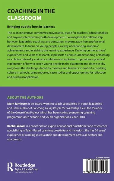 Mark Jamieson is an award-winning coach specialising in youth leadership and is the author of Coaching Young People for Leadership. He is the founder of the GreenWing Project which has been taking pioneering coaching programmes into schools and youth organisations since 2018. Rachel Wood is a coach, expert educational practitioner, and researcher specialising in Team-Based Learning, creativity and inclusion. She has 20 years' experience of working in education and development across all sectors and age groups.