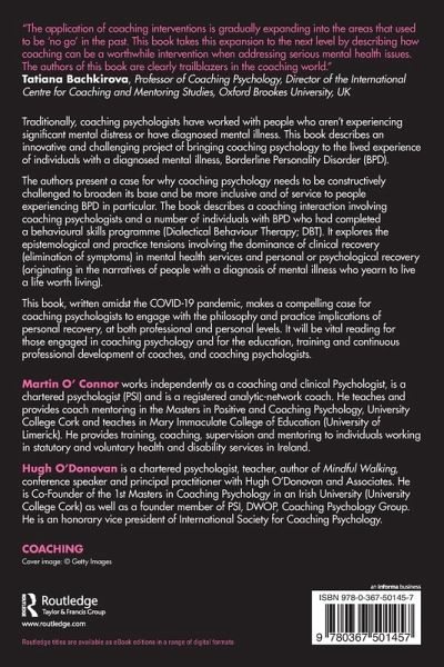 This book describes an innovative and challenging project of bringing coaching psychology to the lived experience of individuals with a diagnosed mental illness, Borderline Personality Disorder (BPD).