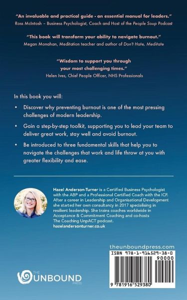 Coaching Through Burnout is a practical guide for leaders (and their teams) to equip themselves with the skills and strategies needed to navigate the growing epidemic of chronic workplace stress. Business Psychologist Hazel Anderson-Turner offers a unique, evidence-based approach to addressing the topic of burnout after years of coaching leaders and teams in the public sector. The book is divided up into three clear sections: the first section shares Hazel's own story of burnout, offering readers an intimate look at the challenges she faced as an ambitious, high-achieving professional navigating the demands of work and motherhood. Hazel's candid account will resonate with many professionals who have struggled to maintain a healthy work-life balance and found themselves on the brink of burnout. The middle section of the book introduces Hazel's 'Coaching Through Burnout' course framework, which equips leaders with practical communication skills and strategies to support their teams. Through clear communication and collective boundary-setting, Hazel aims to empower leaders and organisations to cultivate a culture of wellness and resilience. In the final section of the book, Hazel shares her expertise in Acceptance and Commitment Therapy (ACT) to outline three key personal skills that can help individuals better manage the critical inner voice and overwhelming demands that often contribute to burnout. These techniques have been transformative for Hazel's coaching clients, and she is eager to share them with a wider audience. "An invaluable and practical guide - an essential manual for leaders." Ross McIntosh - Business Psychologist, Coach and Host of the People Soup Podcast "This book will transform your ability to navigate burnout." Megan Monahan - Meditation teacher and author of Don't Hate, Meditate Hazel Anderson-Turner is a Certified Business Psychologist with the ABP and a Professional Certified Coach with the ICF. After a career in Leadership and Organisational Development she started her own consultancy in 2017 specialising in resilient leadership. She trains coaches worldwide in Acceptance & Commitment Coaching and co-hosts The Coaching UnpACT podcast. hazelandersonturner.co.uk