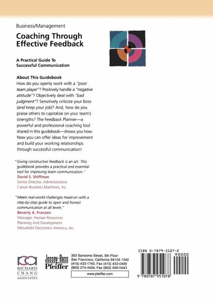 How do you openly work with a "poor team player"? Positively handle a "negative attitude"? Objectively deal with a "bad judgment"? Sensitively criticize your boss (and keep your job)? And, how do you praise others to capitalize on your team's strengths? The Feedback Planner--a powerful and professional coaching tool shared in this guidebook--shows you how. Now you can offer ideas for improvement and build your working relationships through successful communication!