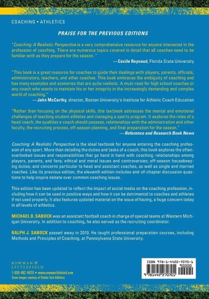 This book details the duties and tasks of a coach and also explores the often-overlooked responsibilities that go hand-in-hand with coaching: relationships among players; ethical and moral issues; off-season housekeeping; and concerns particular to head and assistant coaches. This new edition includes updated material on the impact of social media and the issue of hazing at all levels of athletics. Each chapter also features discussion questions to help inspire debate over common coaching issues.