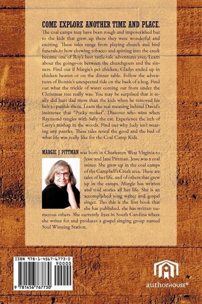 Come explore another time and place. The coal camps may have been rough and impoverished but the kids that grew up there they were wonderful and exciting. These tales range from playing church and bird funerals,to how chewing tobacco and spitting into the creek became one of Roy's best tattle-tale adventures ever. Learn about the Goings on between the churchgoers and the sinners. Find out if Margie's pet chicken, Gladys ended up in chicken heaven or on the dinner table. Follow the adventures of Bonnie's unexpected ride on the back of a hog. Find out what the trickle of water coming out from under the Christmas tree really was. You may be surprised that it really did hurt dad more than the kids when he removed his belt to punish the kids. Learn the real meaning behind David's insistence that 'Pocky mokes". Discover who wins when Raymond tangles with Sally the cat. Experience the itch of Larry's mishap in the woods. Find out why Judy isn't wearing any panties. These tales reveal the good and the bad of what life was really like for the Coal Camp Kids.