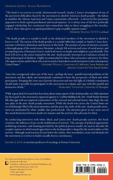 While a great deal of research has been done about many aspects of the death penalty, very little attention has been paid to the movement organized against it. Coalition Building in the Anti-Death Penalty Movement fills that gap with an empirical examination of the external and internal factors that shape the role race plays in the anti-death penalty movement. While the death rows across the U.S. are overwhelmingly filled with racial minorities and the poor, the ranks of the anti-death penalty movement are dominated by white, middle-class professionals. The attention given to race arises out of this racial distinction between death row inmates and the activists who advocate for them. By conducting interviews with white, black, and Latino anti-death penalty activists, this book examines the influence of race on the mobilization of activists and their approach toward abolition. The concepts of political opportunity, mobilizing structures, and framing provided by the political process model, are used to describe the complex manner in which moral opposition to the death penalty is shaped by the racial realities of the activists. Although racial tensions lie just below the surface, they nonetheless create real obstacles for the movement as it strives to build a racially diverse coalition of activists aimed at death penalty abolition.