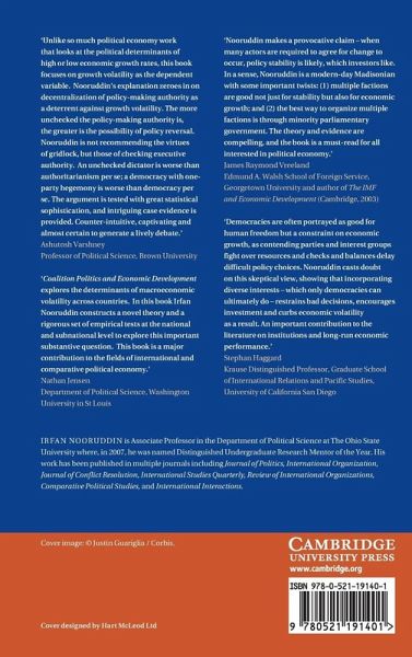 Coalition Politics and Economic Development challenges the conventional wisdom that coalition government hinders necessary policy reform in developing countries. Irfan Nooruddin presents a fresh theory that institutionalized gridlock, by reducing policy volatility and stabilizing investor expectations, is actually good for economic growth. Successful national economic performance, he argues, is the consequence of having the right configuration of national political institutions. Countries in which leaders must compromise to form policy are better able to commit credibly to investors and therefore enjoy higher and more stable rates of economic development. Quantitative analysis of business surveys and national economic data together with historical case studies of five countries provide evidence for these claims. This is an original analysis of the relationship between political institutions and national economic performance in the developing world and will appeal to scholars and advanced students of political economy, economic development and comparative politics.