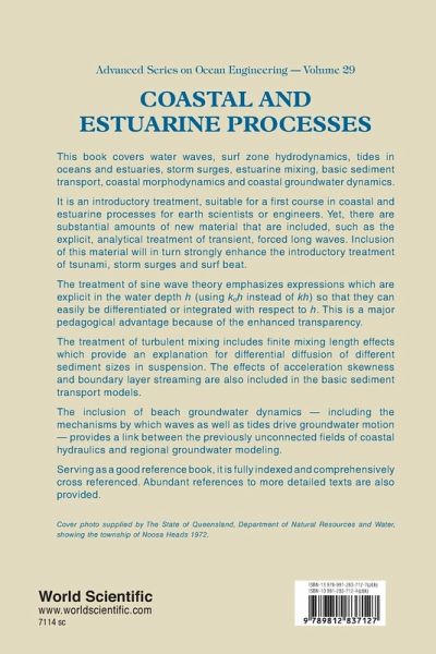 This book is an introductory treatment to coastal and estuarine processes for earth scientists or engineers. Suitable for a first course on the subject, it covers water waves, surf zone hydrodynamics, tides in oceans and estuaries, storm surges, estuarine mixing, basic sediment transport, coastal morphodynamics and coastal groundwater dynamics. The book contains a substantial amount of new material. For example, the explicit, analytical treatment of transient, forced long waves strongly enhances the discussion on tsunami, storm surges and surf beat. The treatment of turbulent mixing includes finite mixing length effects, which provide an explanation for differential diffusion of different sediment sizes in suspension. The recently discovered effects of acceleration skewness and boundary layer streaming are also included in the basic sediment transport models. In addition, the treatment of beach groundwater dynamics: The mechanisms by which waves as well as tides drive groundwater motion, builds the link between the previously unconnected fields of coastal hydraulics and regional groundwater modeling. To serve as an effective reference book for professionals, the book is fully indexed and comprehensively cross referenced.