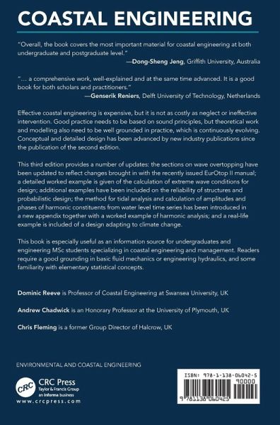 Dominic Reeve is Professor in the College of Engineering at the University of Swansea, UK and a Chartered Mathematician. Andrew Chadwick is former Professor of Coastal Engineering at the University of the West Indies and Honorary Professor at Plymouth, UK. Chris Fleming is a former Group Director of Halcrow, UK.