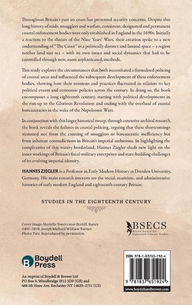 The first comprehensive study of Britain's coastal policing and administration across the long eighteenth century. Throughout Britain's past its coast has presented security concerns. Despite this long history of raids, smugglers and warfare, consistent, designated and permanent coastal enforcement bodies were only established in England in the 1690s. Initially a reaction to the threats of the Nine Years' Wars, their creation spoke to a new understanding of "The Coast" as a politically distinct and liminal space - a region neither land nor sea - with its own issues and social dynamics that had to be controlled through new, more sophisticated, methods. This study explores the circumstances that both necessitated a formalised policing of coastal areas and influenced the subsequent development of these enforcement bodies, showing how their missions and practices fluctuated in relation to key political events and economic policies across the century. In doing so, the book encompasses a long eighteenth century, starting with political developments in the run-up to the Glorious Revolution and ending with the overhaul of coastal bureaucracies in the wake of the Napoleonic Wars. In conjunction with this larger historical sweep, through extensive archival research, the book reveals the failures in coastal policing, arguing that these shortcomings stemmed not from the cunning of smugglers or bureaucratic inefficiency but from inherent contradictions in Britain's imperial ambitions. In highlighting the complexities of this watery borderland, Hannes Ziegler sheds new light on the inner workings of Britain's fiscal-military enterprises and state-building challenges of its evolving imperial identity.