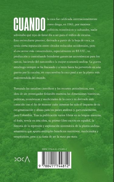 Cuando la coca fue calificada internacionalmente como droga, en 1961, por motivos políticos, económicos y culturales, nadie adivinaba qué tipo de favor iba a ser para el tráfico de cocaína. Este estimulante potente, derivado a partir de la hoja de coca con la ayuda de químicos, ya tenía cierta reputación entre círculos reducidos occidentales, pero al encontrar más consumidores, especialmente en EE.UU., su producción y contrabando brindaron ganancias astronómicas para los narcos, haciendo de la narcoeconomía la mayor economía andina. La guerra antidroga siempre se ha fracasado y a veces hasta ha pervertido en una guerra por la misma droga, en cuya sombra la coca pasó a ser la planta más malentendida del mundo. Tomando los estudios científicos y los recortes periodísticos, esta obra de un investigador finlandés examina las dimensiones históricas, políticas, económicas y medicinales de la coca y su derivado más conocido con el fin de mostrar cuán inmenso ha sido el impacto de su estigmatización y abuso para los países andinos y, particularmente, para Colombia. Tras la publicación varios libros en su lengua materna, el finés, revela en esta obra, su primer libro escrito en español, la historia de la represión y explotación sistemática de la planta andina-amazónica que aporta múltiples beneficios nutritivos, medicinales y terapéuticos, pese a su fama de ser la mata que mata.