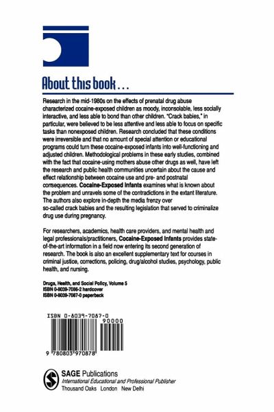 Research in the mid-1980s on the effects of prenatal drug abuse characterized cocaine-exposed children as moody, inconsolable, less socially interactive and less able to bond than other children. It was concluded that these conditions were irreversible. However, methodological problems in these early studies, combined with the fact that cocaine-using mothers abuse other drugs as well, has left the research and public health communities uncertain as to the cause and effect relationship between cocaine use and pre/postnatal consequences. Cocaine-Exposed Infants examines what is known about the problem and unravels some of the contradictions in the literature. The book also explores, in depth, the media frenzy over 'crack babies' and the resulting legislation in the United States that served to criminalize drug use during pregnancy.