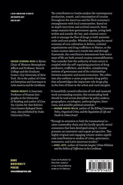 The contributors to Cocaine analyze the contemporary production, transit, and consumption of cocaine throughout the Americas and the illicit economy's entanglement with local communities. Based on in-depth interviews and archival research, these essays examine how government agents, acting both within and outside the law, and criminal actors seek to manage the flow of illicit drugs to both maintain order and earn profits. Whether discussing the moral economy of coca cultivation in Bolivia, criminal organizations and drug traffickers in Mexico, or the routes cocaine takes as it travels into and through Guatemala, the contributors demonstrate how entire ways of life are built around cocaine commodification. They consider how the authority of state actors is coupled with the self-regulating practices of drug producers, traffickers, and dealers, complicating notions of governance and of the relationships between economic and moral economies. The collection also outlines a more progressive drug policy that acknowledges the important role drugs play in the lives of those at the urban and rural margins. Contributors. Enrique Desmond Arias, Lilian Bobea, Philippe Bourgois, Anthony W. Fontes, Robert Gay, Paul Gootenberg, Romain Le Cour Grandmaison, Thomas Grisaffi, Laurie Kain Hart, Annette Idler, George Karandinos, Fernando Montero, Dennis Rodgers, Taniele Rui, Cyrus Veeser, Autumn Zellers-León