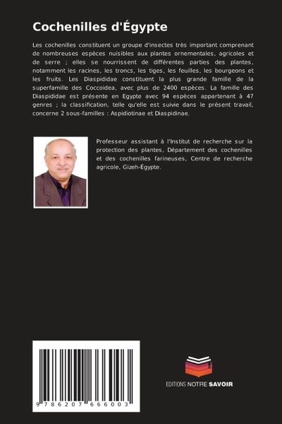 Les cochenilles constituent un groupe d'insectes très important comprenant de nombreuses espèces nuisibles aux plantes ornementales, agricoles et de serre ; elles se nourrissent de différentes parties des plantes, notamment les racines, les troncs, les tiges, les feuilles, les bourgeons et les fruits. Les Diaspididae constituent la plus grande famille de la superfamille des Coccoidea, avec plus de 2400 espèces. La famille des Diaspididae est présente en Egypte avec 94 espèces appartenant à 47 genres ; la classification, telle qu'elle est suivie dans le présent travail, concerne 2 sous-familles : Aspidiotinae et Diaspidinae.