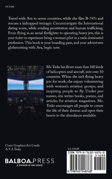 Travel with Ava to seven countries, while she flies B-747s and rescues a kidnapped teenager. Circumnavigate the International dating scene, while evading prostitution and human trafficking. From flying as an aerial firefighter to operating heavy jets, this is your ticket to experience being a woman pilot in a male dominated profession. This book is your boarding pass, and your adventures globetrotting with Ava, begin now.