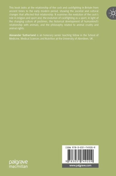 This book looks at the relationship of the cock and cockfighting in Britain from ancient times to the early modern period, showing the societal and cultural changes that affected that relationship. It examines the evolution of the cock's role in religion and sport and, the evolution of cockfighting as a sport, in light of the changing culture of pastimes, the historical development of humankind's relationship with animals, and the philosophy related to animal cruelty and animal rights.