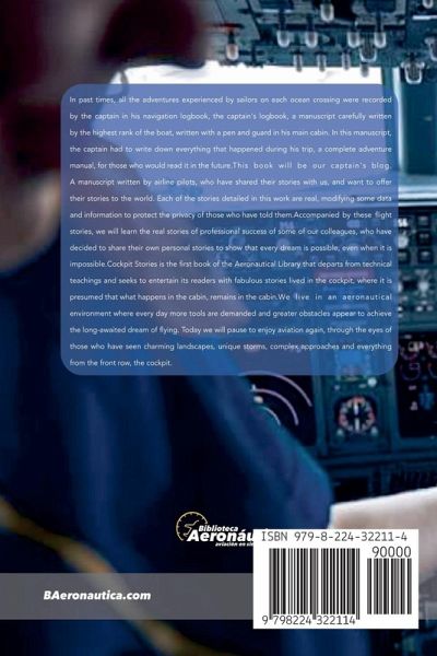 In past times, all the adventures experienced by sailors on each ocean crossing were recorded by the captain in his navigation logbook, the captain's logbook, a manuscript carefully written by the highest rank of the boat, written with a pen and guard in his main cabin. In this manuscript, the captain had to write down everything that happened during his trip, a complete adventure manual, for those who would read it in the future. This book will be our captain's blog. A manuscript written by airline pilots, who have shared their stories with us, and want to offer their stories to the world. Each of the stories detailed in this work are real, modifying some data and information to protect the privacy of those who have told them. Accompanied by these flight stories, we will learn the real stories of professional success of some of our colleagues, who have decided to share their own personal stories to show that every dream is possible, even when it is impossible. Cockpit Stories is the first book of the Aeronautical Library that departs from technical teachings and seeks to entertain its readers with fabulous stories lived in the cockpit, where it is presumed that what happens in the cabin, remains in the cabin. We live in an aeronautical environment where every day more tools are demanded and greater obstacles appear to achieve the long-awaited dream of flying. Today we will pause to enjoy aviation again, through the eyes of those who have seen charming landscapes, unique storms, complex approaches and everything from the front row, the cockpit.