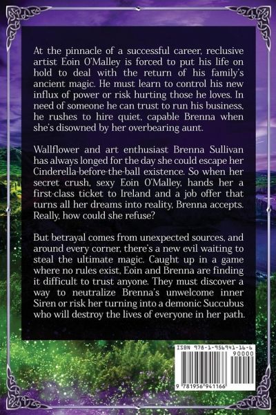 At the pinnacle of a successful career, reclusive artist Eoin O'Malley is forced to put his life on hold to deal with the return of his family's ancient magic. He must learn to control his new influx of power or risk hurting those he loves. In need of someone he can trust to run his business, he rushes to hire quiet, capable Brenna when she's disowned by her overbearing aunt. Wallflower and art enthusiast Brenna Sullivan has always longed for the day she could escape her Cinderella-before-the-ball existence. So when her secret crush, sexy Eoin O'Malley, hands her a first-class ticket to Ireland and a job offer that turns all her dreams into reality, Brenna accepts. Really, how could she refuse? But betrayal comes from unexpected sources, and around every corner, there's a new evil waiting to steal the ultimate magic. Caught up in a game where no rules exist, Eoin and Brenna are finding it difficult to trust anyone. They must discover a way to neutralize Brenna's unwelcome inner Siren or risk her turning into a demonic Succubus who will destroy the lives of everyone in her path.
