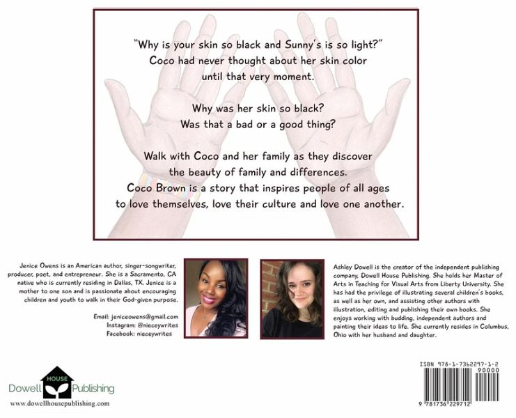 "Why is your skin so black and Sunny's is so light?" Coco had never thought about her skin color until that very moment. Why was her skin so black? Was that a bad or a good thing? Walk with Coco and her family as they discover the beauty of family and differences. Coco Brown is a story that inspires people of all ages to love themselves, love their culture and love one another.