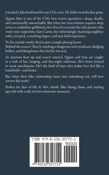 I needed a fake boyfriend for my CIA cover. He didn't read the fine print. Quinn Hart is one of the CIA's best covert operatives-sharp, deadly, and emotionally untouchable. But when her next mission requires deep cover as a suburban girlfriend, she's forced to recruit the only person who won't raise suspicions: Sam Carter, her infuriatingly charming neighbor with a six-pack, a teaching degree, and zero field experience. To the outside world, they're just a couple playing house. Behind the scenes? They're tracking a dangerous tech syndicate, dodging bullets, and faking kisses that feel far too real. As missions heat up and secrets unravel, Quinn and Sam are caught in a web of lies, longing, and late-night stakeouts. She's been trained to resist attachments. He's the kind of man who makes love feel like a battlefield-and home. But when their fake relationship turns into something real, will love survive the truth? Perfect for fans of Mr. & Mrs. Smith, fake dating chaos, and sizzling spycraft with a side of sweet domestic moments.