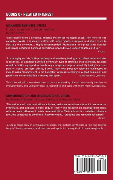 Even several years after the terrorist attacks of September 11, 2001, many organizations are ill-prepared to deal with crises, often opting to deal with them only after the fact. In Code Red in the Boardroom, Tim Coombs argues that crisis management should be a variety of activities that the organization performs daily to prevent crises from occurring. He defines the types of crises an organization might experience (both internal and external), draws from a wide variety of case examples, and showcases cutting-edge techniques that are being tested in the public and private sectors to demonstrate how crisis management can be hardwired into the corporate DNA, so that sensing, preventing, and responding quickly to crises become everyone's responsibility. In the process, he explores evolving roles for executives, managers, and front-line employees in communicating and implementing crisis plans. Ultimately, the book shows readers how proactive crisis management makes the company stronger, more resilient, and adaptable to change. A glossary of key terms and templates for establishing a crisis management program make this book an essential resource for all organizations. Even several years after the terrorist attacks of September 11, 2001, many organizations delude themselves about crisis management. Some enterprises, especially smaller ones, still believe that a crisis cannot happen to them. Others have gone through the steps of creating a crisis management plan, but really pay no more than lip service to the program, and may, in fact, be creating a false sense of security that leaves the company even more vulnerable to attack, accident, crime, or other sources of crisis. Tim Coombs argues that crisis management should not just be something you do when a crisis hits. It should be a variety of activities that the organization performs daily to prevent crises from ocurring. In Code Red in the Boardroom, Coombs defines the types of crises an organization might experience (both internal and external), draws from a wide variety of case examples, and showcases cutting-edge techniques that are being tested in the public and private sectors to demonstrate how crisis management can be hardwired into the corporate DNA-so that sensing, preventing, and responding quickly to crises become everyone's responsibility. In the process, he explores evolving roles for executives, managers, and front-line employees in communicating and implementing crisis plans. Ultimately, the book shows readers how proactive crisis management makes the company stronger, more resilient, and adaptable to change. A glossary of key terms and templates for establishing a crisis management program make this book an essential resource for all organizations.