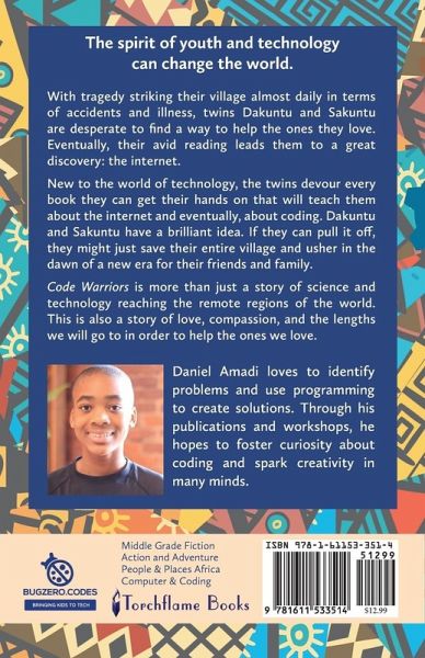 Code Warriors brings to life the truth of what can be possible with the advance of technology and the spirit of youth. With tragedy striking their village almost daily through accidents and illness, twins Dakuntu and Sakuntu are desperate to find a way to help the ones they love. Eventually, their love of reading leads them to a great discovery: the internet. New to the world of technology, the twins devour every book they can get their hands on that will teach them about the internet and eventually about coding. For, Dakuntu and Sakuntu have a brilliant idea-and if they can pull it off, they might just save their entire village and usher in the dawn of a new era for their friends and family. Raw and compelling, Code Warriors is more than just a story of science and technology reaching the remote regions of the world; it is also a story of love, compassion, and the lengths we will go to in order to help the ones we love.