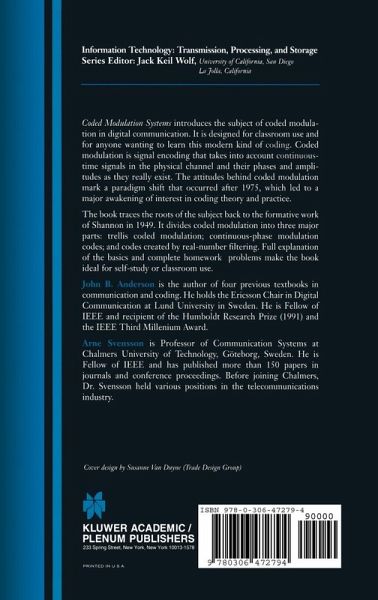 Coded Modulation Systems is an introduction to the subject of coded modulation in digital communication. It is designed for classroom use and for anyone wanting to learn the ideas behind this modern kind of coding. Coded modulation is signal encoding that takes into account the nature of the channel over which it is used. Traditional error correcting codes work with bits and add redundant bits in order to correct transmission errors. In coded modulation, continuous time signals and their phases and amplitudes play the major role. The coding can be seen as a patterning of these quantities. The object is still to correct errors, but more fundamentally, it is to conserve signal energy and bandwidth at a given error performance. The book divides coded modulation into three major parts. Trellis coded modulation (TCM) schemes encode the points of QAM constellations; lattice coding and set-partition techniques play major roles here. Continuous-phase modulation (CPM) codes encode the signal phase, and create constant envelope RF signals. The partial-response signaling (PRS) field includes intersymbol interference problems, signals generated by real convolution, and signals created by lowpass filtering. In addition to these topics, the book covers coding techniques of several kinds for fading channels, spread spectrum and repeat-request systems. The history of the subject is fully traced back to the formative work of Shannon in 1949. Full explanation of the basics and complete homework problems make the book ideal for self-study or classroom use.