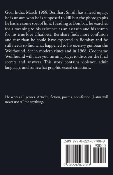 Goa, India, March 1968. Bernhart Smith has a head injury, he is unsure who he is supposed to kill but the photographs he has are some sort of hint. Heading to Bombay, he searches for a meaning to his existence as an assassin and his search for his true love Charlotte. Bernhart finds more confusion and fear than he could have expected in Bombay and he still needs to find what happened to his ex-navy gunboat the Wolfhound. Set in modern times and in 1968, Codename Wolfhound will have you turning pages to discover the final secrets and answers. This story contains violence, adult language, and somewhat graphic sexual situations.