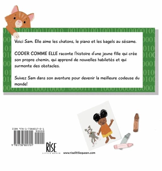 Voici Sam. Elle aime les chatons, le piano et les bagels au sésame. CODER COMME ELLE raconte l'histoire d'une jeune fille qui crée son propre chemin, qui apprend de nouvelles habiletés et qui surmonte des obstacles. Suivez Sam dans son aventure pour devenir la meilleure codeuse du monde!