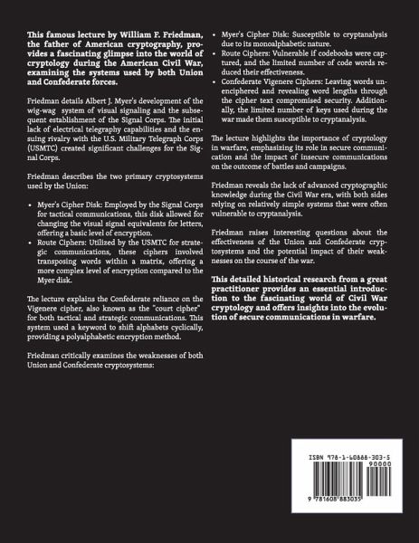 Break this code: QDOJHQ FRPPHQGHG WKH SHRSOH RI WKH ZLWK Hint for the reader: patriots and tiki torches FTW. Solution inside. This famous lecture by William F. Friedman, the father of American cryptography, provides a fascinating glimpse into the world of cryptology during the American Civil War, examining the systems used by both Union and Confederate forces. Key Points: 1. Albert J. Myer and the Signal Corps: The lecture details Myer's development of the "wig-wag" system of visual signaling and the subsequent establishment of the Signal Corps. The initial lack of electrical telegraphy capabilities and the ensuing rivalry with the U.S. Military Telegraph Corps (USMTC) created significant challenges for the Signal Corps. 2. Union Cryptosystems: The lecture describes the two primary cryptosystems used by the Union: 3. Myer's Cipher Disk: Employed by the Signal Corps for tactical communications, this disk allowed for changing the visual signal equivalents for letters, offering a basic level of encryption. 4. Route Ciphers: Utilized by the USMTC for strategic communications, these ciphers involved transposing words within a matrix, offering a more complex level of encryption compared to the Myer disk. 5. Confederate Cryptosystems: The lecture explains the Confederate reliance on the Vigenère cipher, also known as the "court cipher," for both tactical and strategic communications. This system used a keyword to shift alphabets cyclically, providing a polyalphabetic encryption method. 6. Weaknesses of the Systems: The lecture critically examines the weaknesses of both Union and Confederate cryptosystems: 7. Myer's Cipher Disk: Susceptible to cryptanalysis due to its monoalphabetic nature. 8. Route Ciphers: Vulnerable if codebooks were captured, and the limited number of code words reduced their effectiveness. 9. Confederate Vigenère Ciphers: Leaving words unenciphered and revealing word lengths through the cipher text compromised security. Additionally, the limited number of keys used during the war made them susceptible to cryptanalysis. Additional Observations: 1. The lecture highlights the importance of cryptology in warfare, emphasizing its role in secure communication and the impact of insecure communications on the outcome of battles and campaigns. 2. It reveals the lack of advanced cryptographic knowledge during the Civil War era, with both sides relying on relatively simple systems that were often vulnerable to cryptanalysis. 3. The lecture raises interesting questions about the effectiveness of the Union and Confederate cryptosystems and the potential impact of their weaknesses on the course of the war. Overall, the lecture provides a valuable introduction to the fascinating world of Civil War cryptology and offers insights into the evolution of secure communications in warfare.