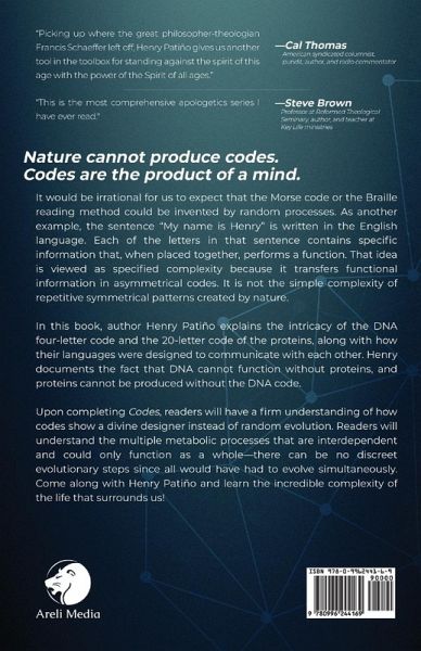 Nature cannot produce codes. Codes are the product of a mind. It would be irrational for us to expect that the Morse code or the Braille reading method could be invented by random processes. As another example, the sentence "My name is Henry" is written in the English language. Each of the letters in that sentence contains specific information that, when placed together, performs a function. That idea is viewed as specified complexity because it transfers functional information in asymmetrical codes. It is not the simple complexity of repetitive symmetrical patterns created by nature. In this book, author Henry Patiño explains the intricacy of the DNA four-letter code and the 20-letter code of the proteins, along with how their languages were designed to communicate with each other. Henry documents the fact that DNA cannot function without proteins, and proteins cannot be produced without the DNA code. Upon completing Codes, readers will have a firm understanding of how codes show a divine designer instead of random evolution. Readers will understand the multiple metabolic processes that are interdependent and could only function as a whole-there can be no discreet evolutionary steps since all would have had to evolve simultaneously. Come along with Henry Patiño and learn the incredible complexity of the life that surrounds us!