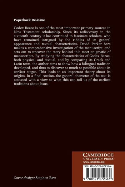 David Parker makes a comprehensive investigation of the Codex Bezae, one of the most important primary sources in New Testament scholarship.
