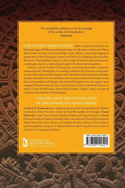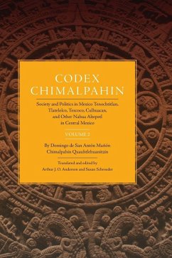 The Codex Chimalpahin, which consists of more than one thousand pages of Nahuatl and Spanish texts, is a life history of the only Nahua about whom we have much knowledge. It also affords a firsthand indigenous perspective on the Nahua past, present, and future in a changing colonial milieu. Moreover, Chimalpahin's sources, a rich variety of ancient and contemporary records, give voice to a culture long thought to be silent and vanquished. Volume Two of the Codex Chimalpahin represents heretofore-unknown manuscripts by Chimalpahin. Predominantly annals and dynastic records, it furnishes detailed histories of the formation and development of Nahua societies and polities in central Mexico over an extensive period. Included are the Exercicio quotidiano of Sahagun, for which Chimalpahin was the copyist, some unsigned Nahuatl materials, and a letter by Juan de San Antonio of Texcoco as well as a store of information about Nahua women, religion, ritual, concepts of conquest, and relations with Europeans.