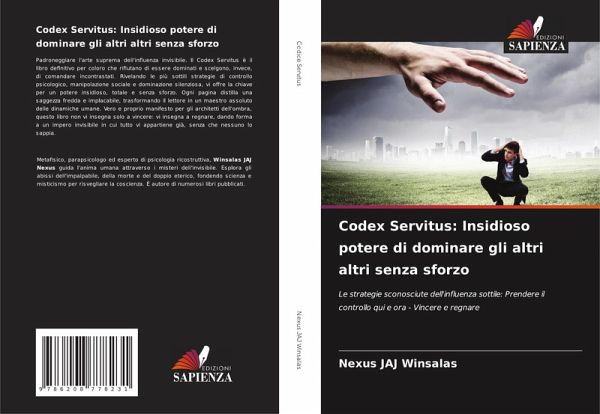 Padroneggiare l'arte suprema dell'influenza invisibile. Il Codex Servitus è il libro definitivo per coloro che rifiutano di essere dominati e scelgono, invece, di comandare incontrastati. Rivelando le più sottili strategie di controllo psicologico, manipolazione sociale e dominazione silenziosa, vi offre la chiave per un potere insidioso, totale e senza sforzo. Ogni pagina distilla una saggezza fredda e implacabile, trasformando il lettore in un maestro assoluto delle dinamiche umane. Vero e proprio manifesto per gli architetti dell'ombra, questo libro non vi insegna solo a vincere: vi insegna a regnare, dando forma a un impero invisibile in cui tutto vi appartiene già, senza che nessuno lo sappia.
