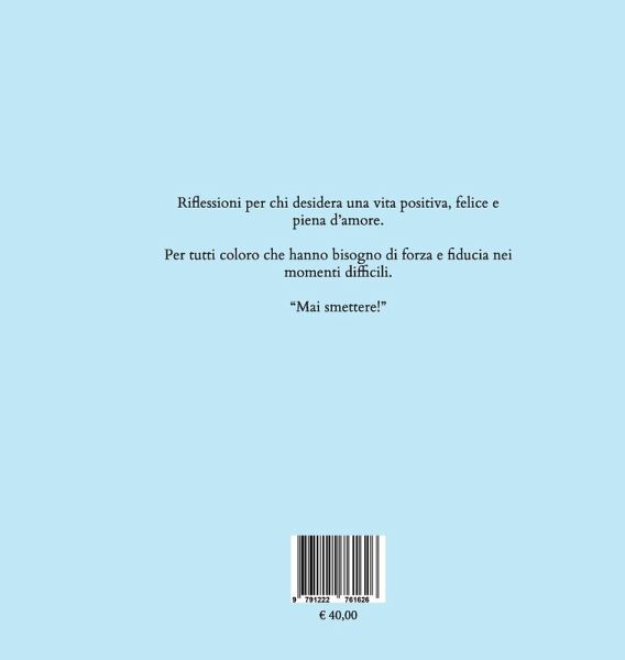 Attraverso riflessioni sincere e spunti di crescita personale, scoprirai come coltivare relazioni più consapevoli, basate sulla comunicazione, il rispetto e la libertà individuale. Un invito a guardare oltre le illusioni, per abbracciare la bellezza dell'amore in tutte le sue forme, anche quelle inaspettate. Un percorso di consapevolezza che ti guiderà verso una maggiore comprensione di te stesso e dell'amore che meriti. "Riflessioni per tutti coloro che desiderano una vita positiva con felicità e amore. Per tutti che hanno bisogno di forza e fiducia per i momenti difficili. Non arrendersi mai"