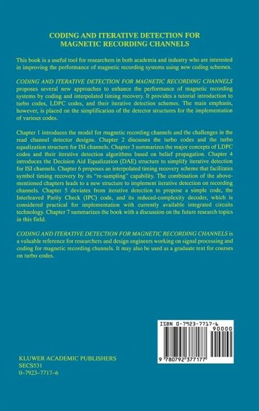The advent of the internet age has produced enormous demand for in creased storage capacity and for the consequent increases in the amount of information that can be stored in a small space. While physical and media improvements have driven the majority of improvement in modern storage systems, signal processing and coding methods have increasing ly been used to augment those improvements. Run-length-limited codes and partial-response detection methods have come to be the norm in an industry that once rejected any sophistication in the read or write pro cessing circuits. VLSI advances now enable increasingly sophisticated signal processing methods for negligible cost and complexity, a trend sure to continue even as disk access speeds progress to billions of bits per second and terabits per square inch in the new millennium of the in formation age. This new book representing the Ph. D. dissertation work of Stanford's recent graduate Dr. Zining Wu is an up-to-date and fo cused review of the area that should be of value to those just starting in this area and as well those with considerable expertise. The use of saturation recording, i. e. the mandated restriction of two-level inputs, creates interesting twists on the use of communica tion/transmission methods in recording.
