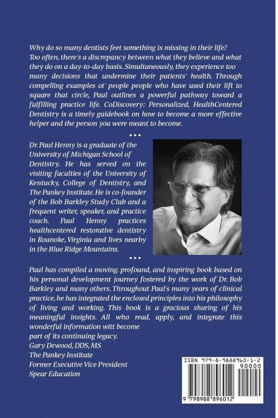 Most dentists are familiar with the words "CoDiscovery" and "CoDiagnosis," yet few are familiar with the origin of the words and their true intended purpose. CoDiscovery and CoDiagnosis are key steps in a three-stage participative patient development process Bob Barkley called "Three Phase Adult Education." The purpose of Three Phase Adult Education is to take a person who is generally unaware of the extent and complexity of their situation, strategically elevate their understanding, connect that understanding to what's most important to them, and facilitate the taking of appropriate action. It's a predictable process when a dentist and care team learn how to understand each person on a level that they are able to function as empathetic, principal-centered leaders. This book explores the origin of Three Phase Adult Education and explains how and why it works so well. Additionally, it provides numerous examples of how the concepts are applied, as well as how it positively influenced the lives and practice trajectories of many of greatest leaders in dentistry. As every reader knows, the profession of dentistry is rapidly changing. Increased efficiencies, technology, practice consolidation and corporatization are making dentistry look more and more like a well-paid, highly skilled trade instead of a true healthcare profession. CoDiscovery helps you understand these trends (and therefore your choices) and by so doing, creates the opportunity to develop a preferred future.
