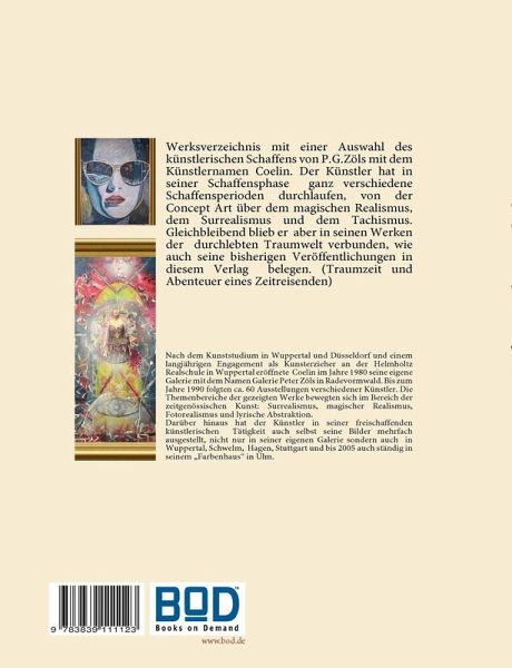 Werksverzeichnis mit einer Auswahl des künstlerischen Schaffens von P.G.Zöls mit dem Künstlernamen Coelin. Der Künstler hat in seiner Schaffensphase ganz verschiedene Schaffensperioden durchlaufen, von der Concept Art über dem magischen Realismus, dem Surrealismus und dem Tachismus. Gleichbleibend blieb er aber in seinen Werken der durchlebten Traumwelt verbunden, wie auch seine bisherigen Veröffentlichungen in diesem Verlag belegen. (Traumzeit und Abenteuer eines Zeitreisenden)
