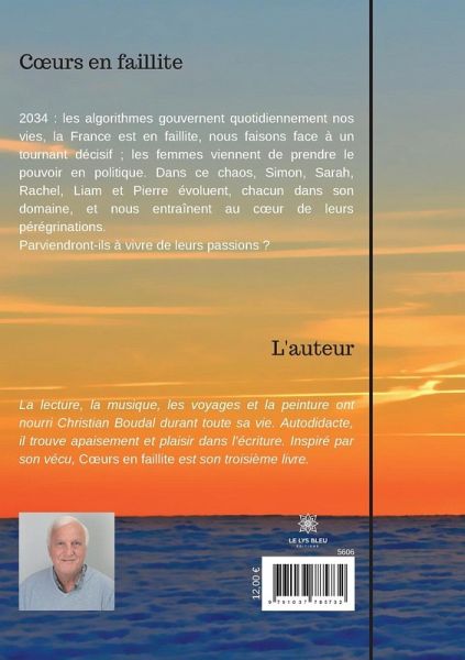 2034 : les algorithmes gouvernent quotidiennement nos vies, la France est en faillite, nous faisons face à un tournant décisif ; les femmes viennent de prendre le pouvoir en politique. Dans ce chaos, Simon, Sarah, Rachel, Liam et Pierre évoluent, chacun dans son domaine, et nous entraînent au c¿ur de leurs pérégrinations. Parviendront-ils à vivre de leurs passions ?