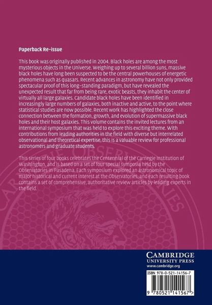 This book was originally published in 2004. Black holes are among the most mysterious objects in the Universe. Weighing up to several billion Suns, massive black holes have long been suspected to be the central powerhouses of energetic phenomena such as quasars. Advances in astronomy have not only provided spectacular proof of this long-standing paradigm, but have revealed the unexpected result that far from being rare, exotic beasts, they inhabit the center of virtually all large galaxies. Candidate black holes have been identified in increasingly large numbers of galaxies, both inactive and active, to the point where statistical studies are possible. Fresh work has highlighted the close connection between the formation, growth, and evolution of supermassive black holes and their host galaxies. This volume contains the invited lectures from an international symposium that was held to explore this exciting theme, and is a valuable review for professional astronomers and graduate students.