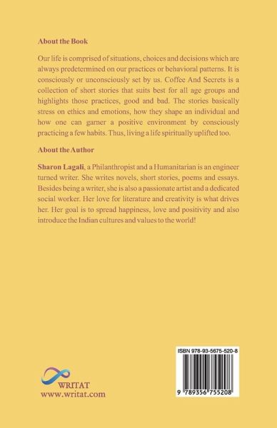 Our life is comprised of situations, choices and decisions which are always predetermined on our practices or behavioral patterns. It is consciously or unconsciously set by us. Coffee And Secrets is a collection of short stories that suits best for all age groups and highlights those practices, good and bad. The stories basically stress on ethics and emotions, how they shape an individual and how one can garner a positive environment by consciously practicing a few habits. Thus, living a life spiritually uplifted too.