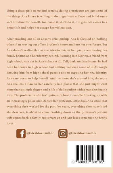 Using a dead girl's name and secretly dating a professor are just some of the things Ana Lopez is willing to do to graduate college and build some sort of future for herself. You name it, she'll do it, if it gets her closer to a better life and helps her escape her violent past. After crawling out of an abusive relationship, Ana is focused on nothing other than moving out of her brother's house and into her own future. But Ana doesn't realise that as she tries to outrun her past, she's leaving her family behind and her identity behind. Running into Marlon, a friend from high school, was not in Ana's plans at all. Tall, dark and handsome, he had been her crush in high school, but nothing had ever come of it. Although knowing him from high school poses a risk to exposing her new identity, Ana can't seem to help herself. And the more she's around him, the more Ana realizes a flaw in her carefully laid plans: that she just might want more than a simple degree and a life of dull comfort with a man she doesn't love. The problem is, she isn't quite sure how to handle breaking up with an increasingly possessive Daniel, her professor. Little does Ana know that everything she's worked for the past few years, everything she's convinced she deserves, is about to come crashing down as the professor's jealous wife comes back, a family crisis rears up and Ana loses someone she dearly loves.