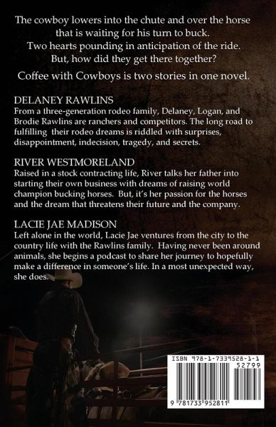 The cowboy lowers into the chute and over the horse who is waiting for his turn to buck. Two hearts pounding in anticipation of the ride. But, how did they get there together? Coffee with Cowboys is two stories in one novel. DELANEY RAWLINS From a three-generation rodeo family, Delaney, Logan, and Brodie Rawlins are ranchers and competitors. The long road to fulfilling their rodeo dreams is riddled with surprises, disappointment, indecision, tragedy, and secrets. RIVER WESTMORELAND Raised in a stock contracting life, River talks her father into starting their own business with dreams of raising world champion bucking horses. But, it's her passion for the horses and the dream that threatens their future and the company. LACIE JAE MADISON Left alone in the world, Lacie Jae ventures from the city to the country life with the Rawlins family. Having never been around animals, she begins a podcast to share her journey to hopefully make a difference in someone's life. In a most unexpected way, she does.